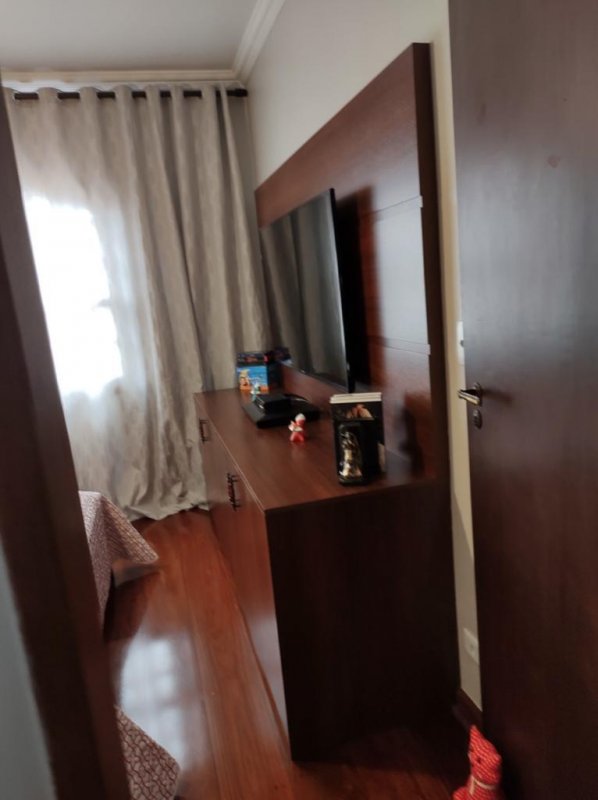 Sala ampla com dois ambientes, banheiro completo com box (vidro) e gabinete, sala de jantar integrada com cozinha americana ( com armários planejados).
