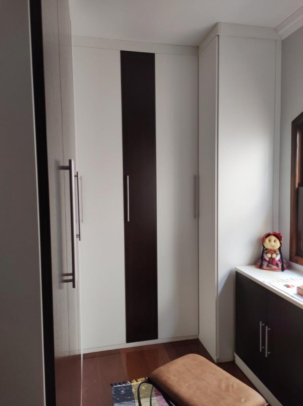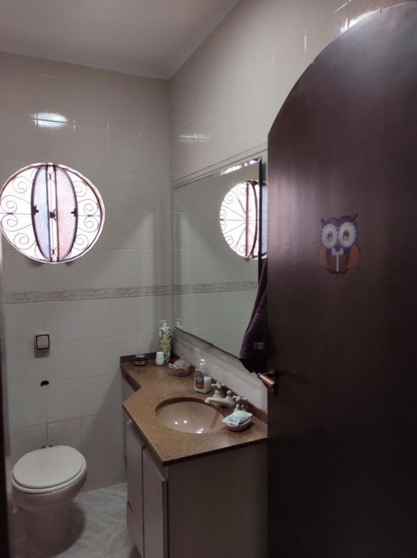 Sobrado com 3 dormitórios com armários planejados e um banheiro completo com box (vidro) e gabinete.