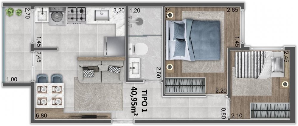 - Área Privativa: 40,95 m²