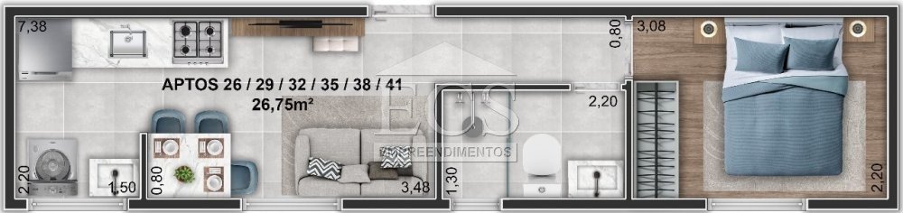 - Área Privativa: 27 m²