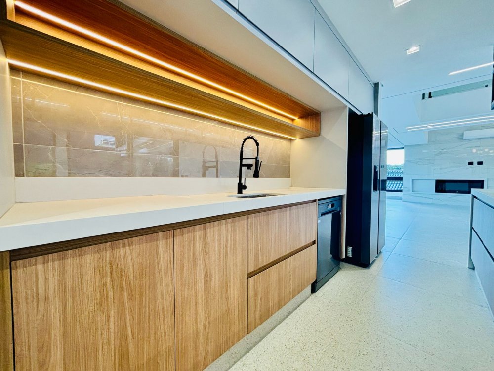 Cozinha ampla com armários embutidos e despensa